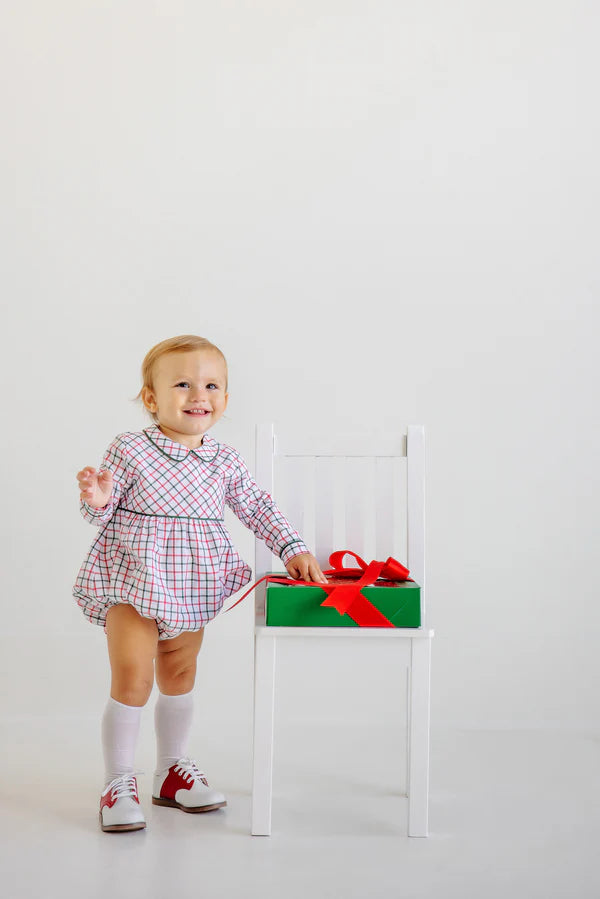 Our Long Sleeve Bradford Romper featuring Old Town Tattersall with Grier Green is too good to be true! We love how soft this romper feels, how easy it is to play in, and how detailed the embroidery is. Every inch is perfection!