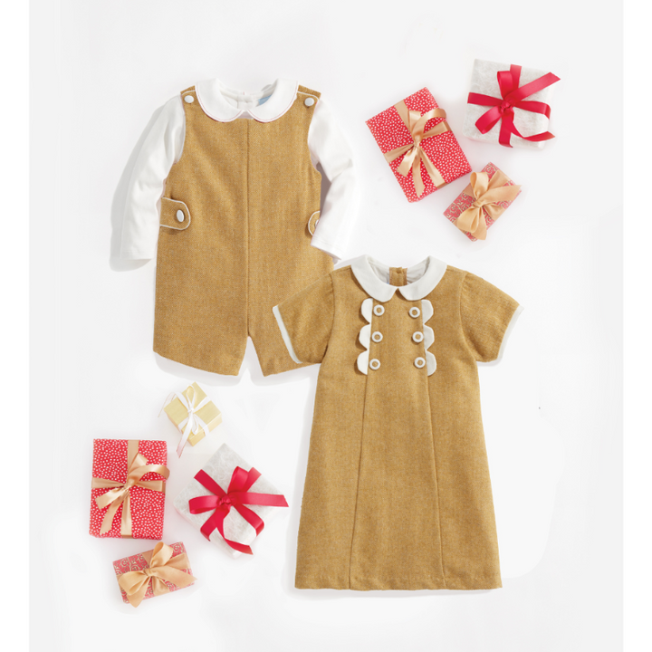 Sister Matches - Ruffle Sleeve Dress, Phyllis Dress and Scalloped Madeline Dress ....all in Mustard Herringbone!