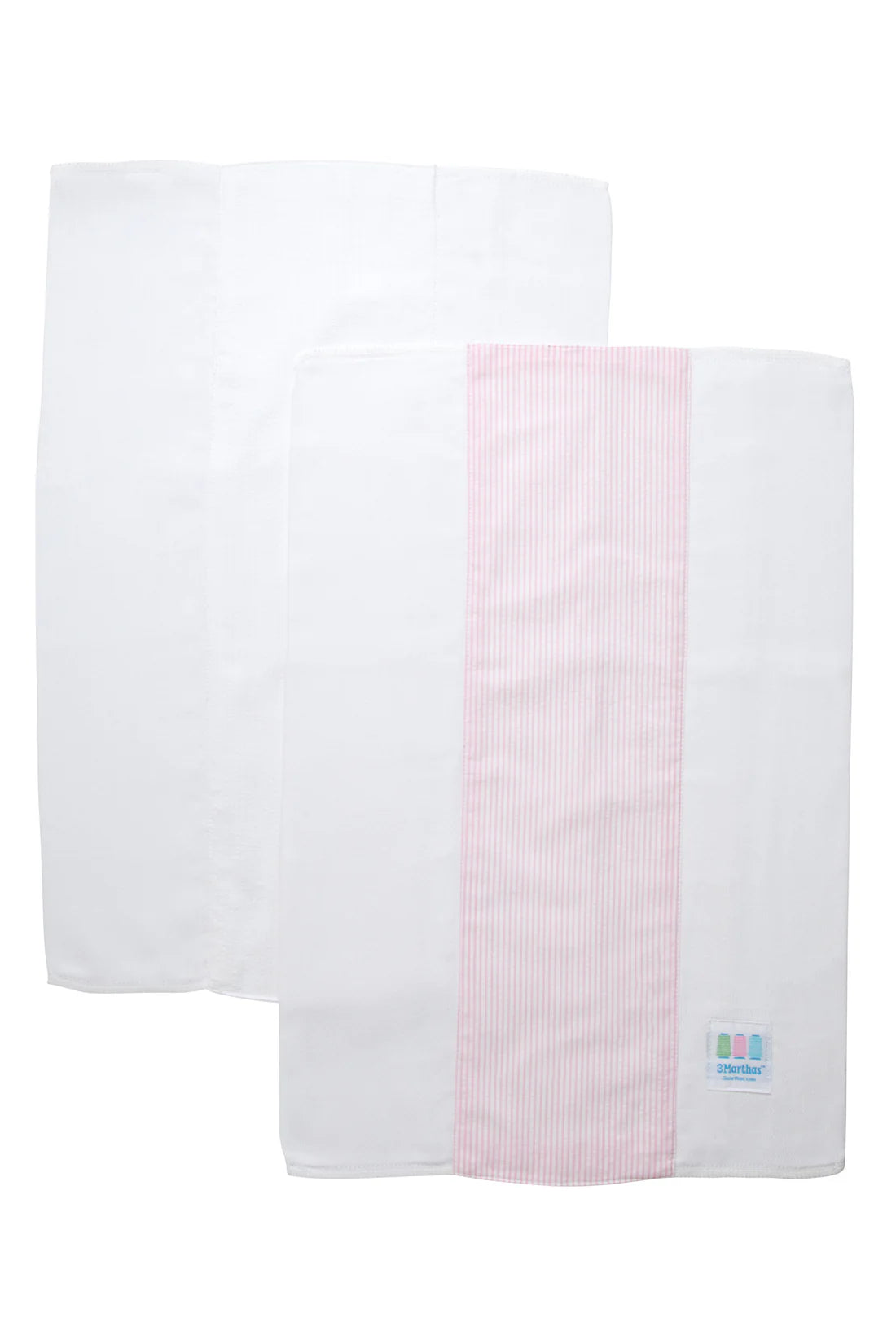 Our Set of Two Burp Cloths is one of our most practical and beloved products! Made from highly absorbent, traditional cloth diapers, this set of two burp cloths is designed to handle even the messiest feedings. Each burp cloth features a beautiful fabric panel sewn down the center, adding a touch of style to this essential baby item.