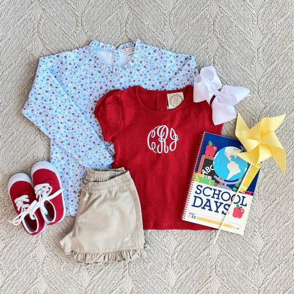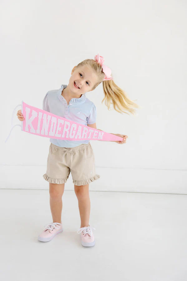 Your little girl will twirl with joy in our Shelby Anne Shorts in Keeneland Khaki featuring Keeneland Khaki Stork embroidery and charming ruffle details. These versatile shorts combine classic preppy style with playful feminine touches, making them perfect for school, playdates or summer adventures.