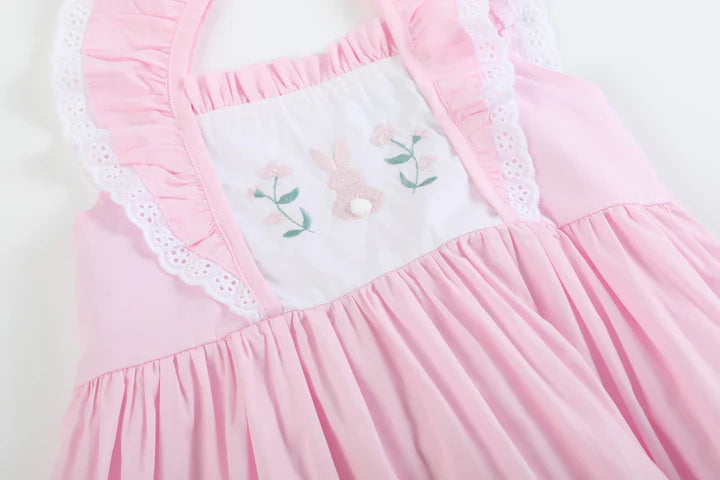 Pink Bunny Ruffle Shoulder Dress