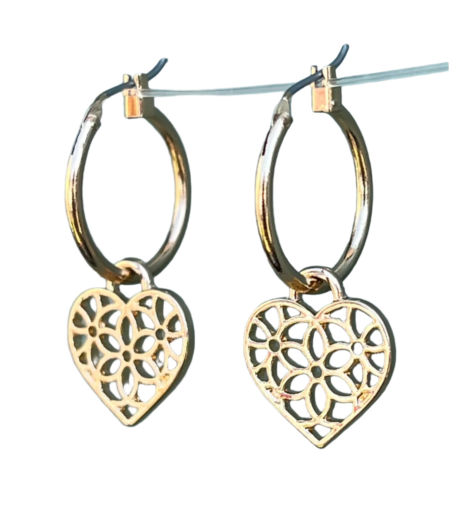Gold Heart Charm Hoop Earrings