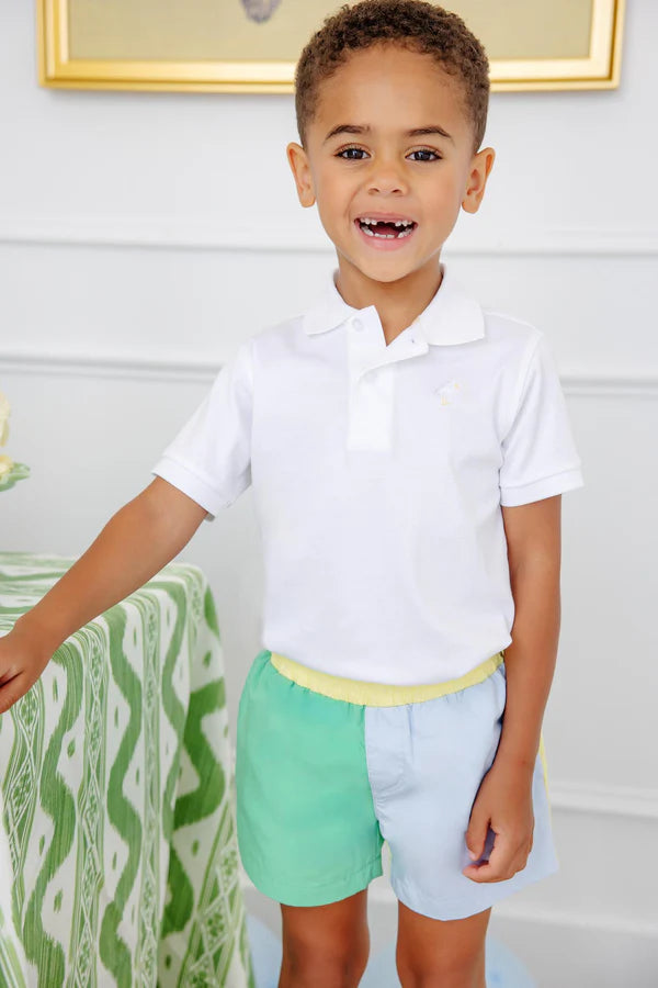 Bright and cheerful, the Sheffield Shorts in Grace Bay Green, Buckhead Blue, and Lake Worth Yellow bring a pop of color to his summer wardrobe. These boys' shorts feature a vibrant colorblock design that's perfect for sunny days, beach trips, and backyard fun. Comfortable, durable, and full of personality, they're the playful shorts that make getting dressed an adventure in itself.