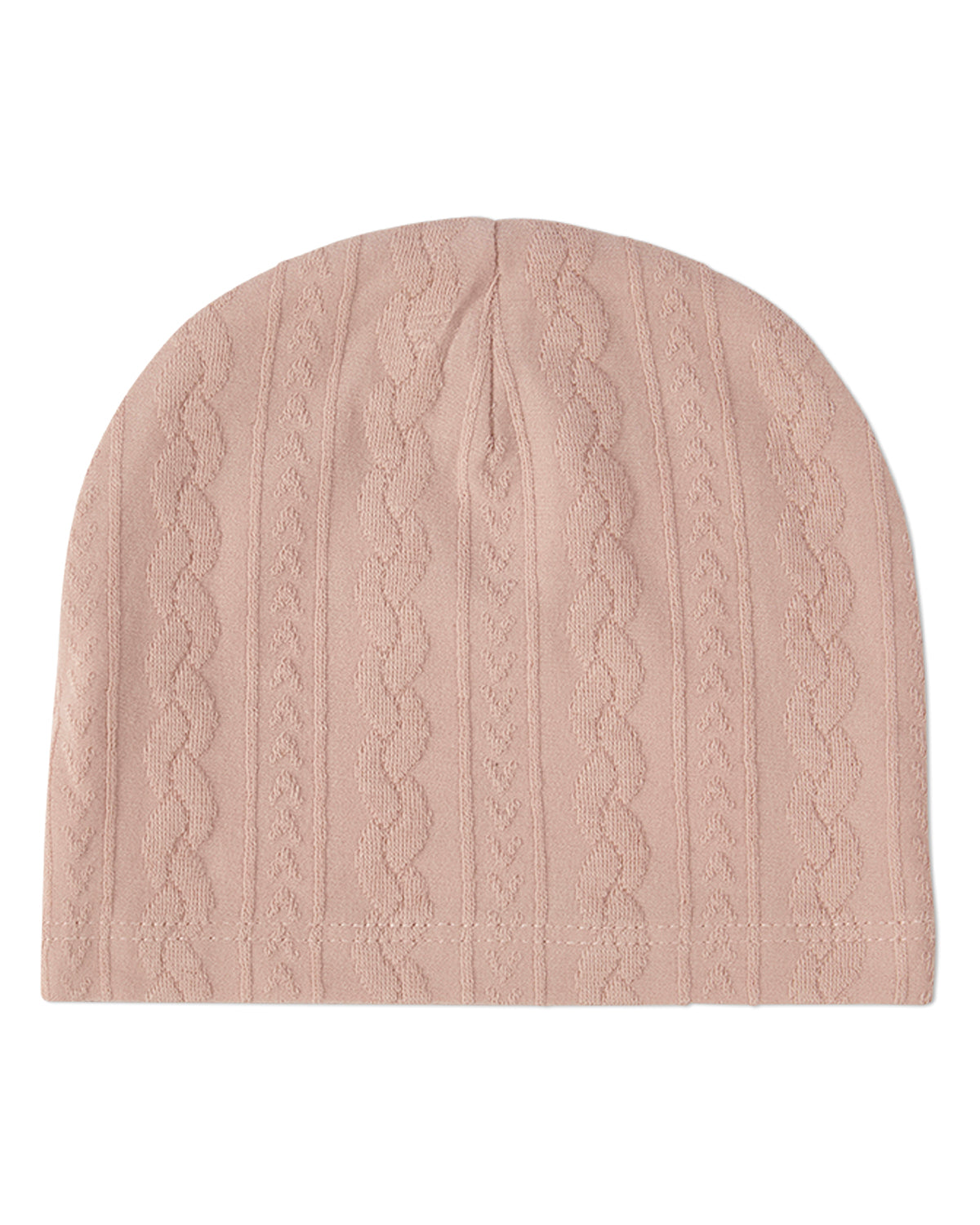 How can you keep your tot's tender noggin warm without overheating? Check out this adorable baby beanie. It's cotton-rich for soothing softness and breathable comfort. Plus, it features a luxe jacquard pattern, specially crafted to resemble cable-knit ribbing. Result? Your cherub stays stylishly cozy without feeling hot or sweaty.