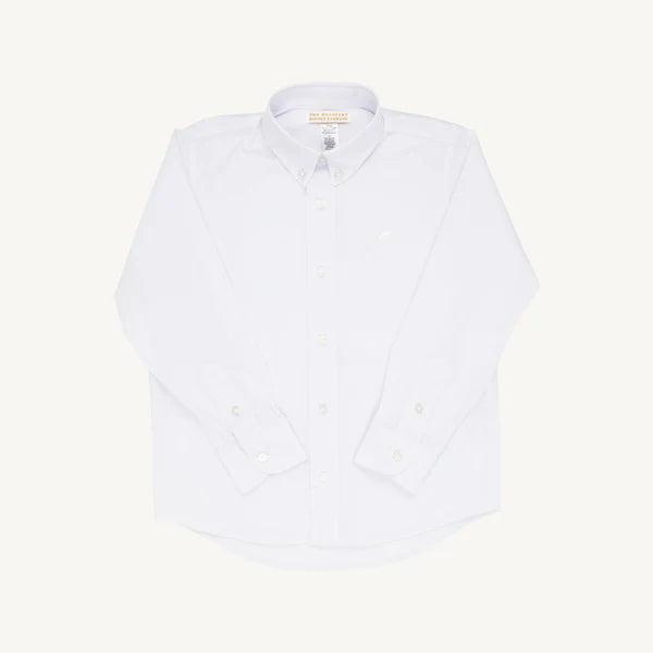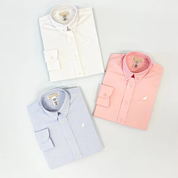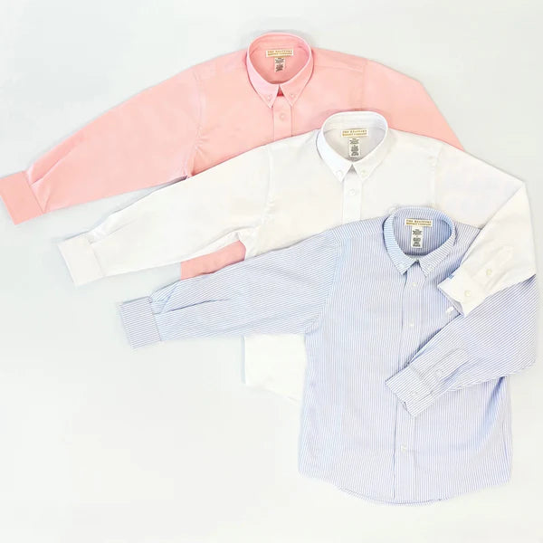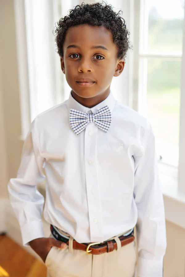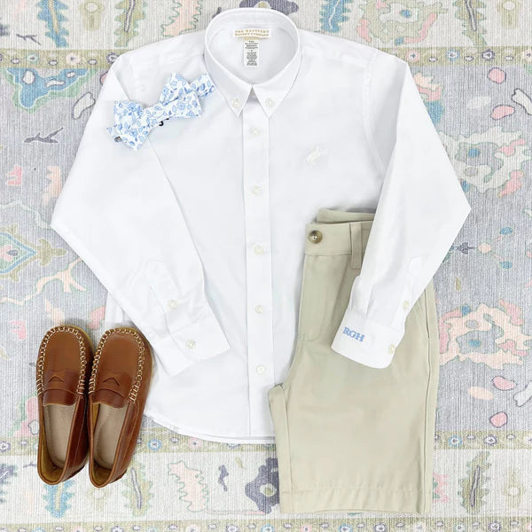 Your dapper little gentleman will look perfectly polished in our Dean's List Dress Shirt in Worth Avenue White with Worth Avenue White Stork embroidery. This crisp Oxford button-down is ideal for school uniforms, family photos and dressy celebrations. A wardrobe essential that pairs beautifully with Charlie's Chinos, Prep School Pants and his favorite blazer!