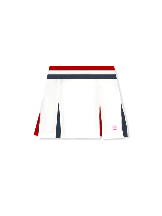 The Courtney Skort serves up classic style with a bold, athletic twist. Designed in crisp Pure Coconut and accented with Nantucket Navy and Candy Apple Red detailing in the pleats and top lines, this skort brings energy and elegance to every swing, spin, and step.