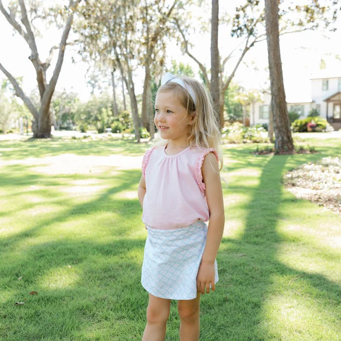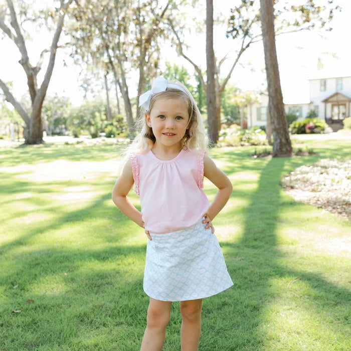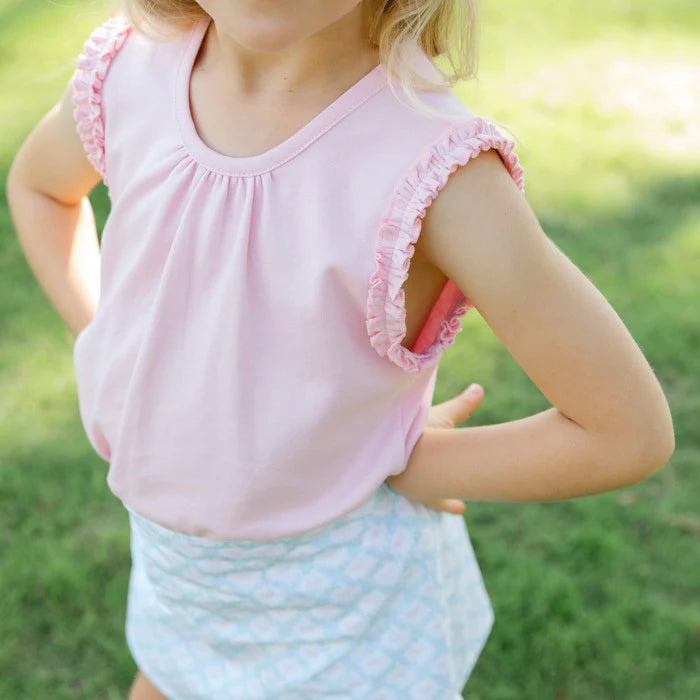 Colorful and sweet, this easy basic is a must in your darling girl’s closet. Made in extra-soft cotton, this sleeveless summer tee features a ruffled trim and easy pleats on the front that instantly elevate any outfits. Perfect for everyday adventures!