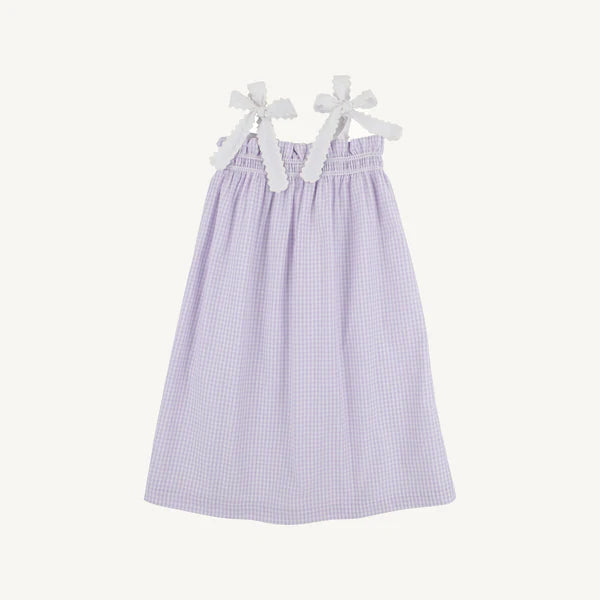 Our Lainey's Little Dress in Lauderdale Lavender Gingham will be the dress she wants to wear all season long! A classic silhouette keeps her comfortable through any activity while the thoughtful bow and smocking details make the dress look put-together and polished. This is the dress that ends up in every suitcase, every photo op, and every "what should I wear today?" moment!