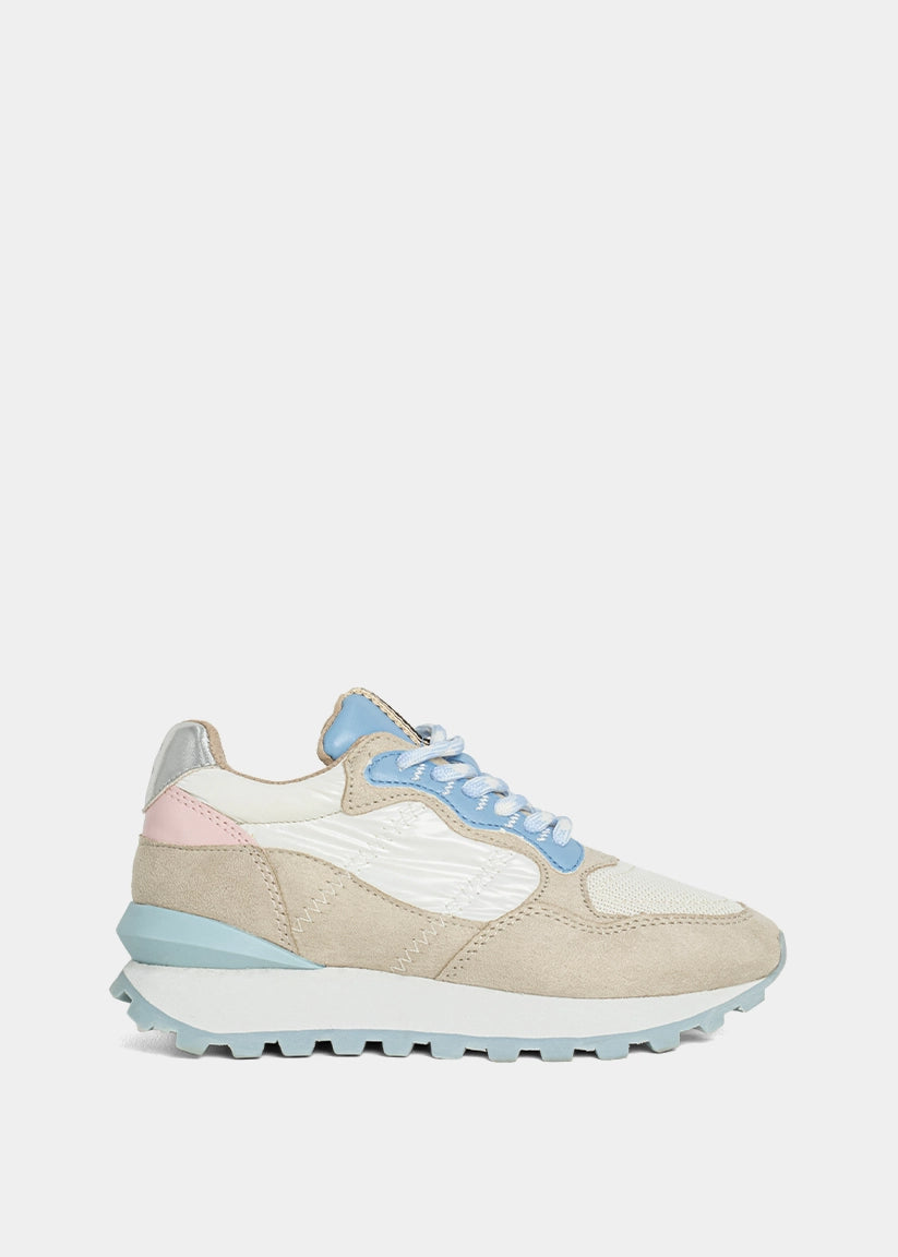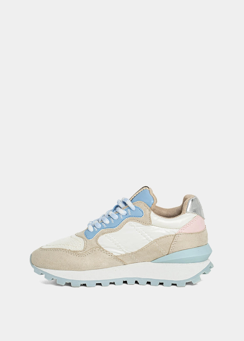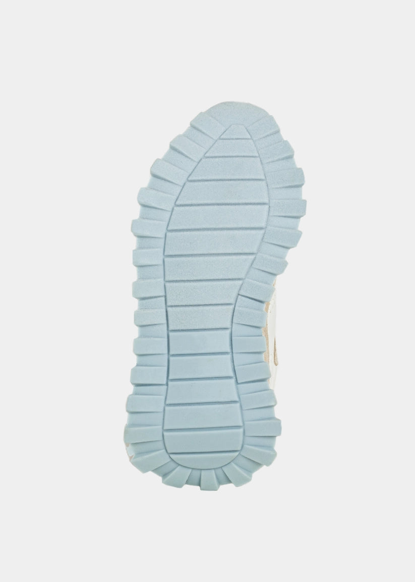 Let your little one shine bright from the playground to weekend outings. PHOEBE MINI brings bold energy to tiny steps, combining retro-cool vibes with a playful twist. With its chunky sole, shimmering textures, and layered pastel tones, this standout sneaker delivers big style for little fashionistas. Designed for fun, comfort, and all-day movement this pair is a mini-size statement.