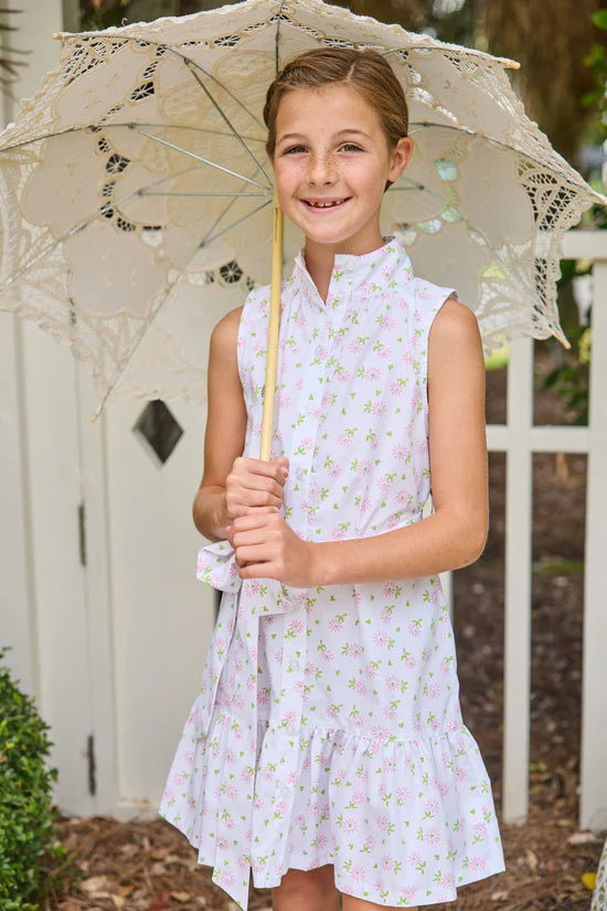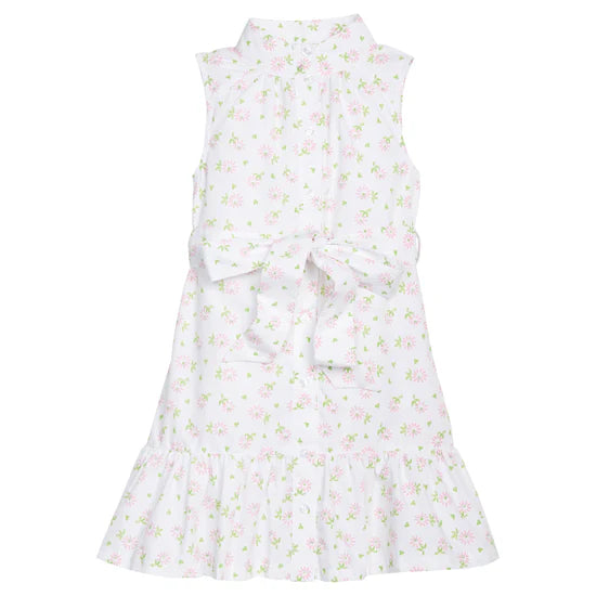 A Little English favorite, our Amore Dress now comes in a sleeveless silhouette for older girls. This classic, sophisticated style features a high neck with buttons down the front and a self-tie sash at the waist. Perfect for Easter celebrations, garden gatherings, and seaside afternoons, this pink and green Meriwether Floral dress brings a fresh charm to the season. Plus, siblings can easily coordinate in other pieces from our Meriwether Collection!