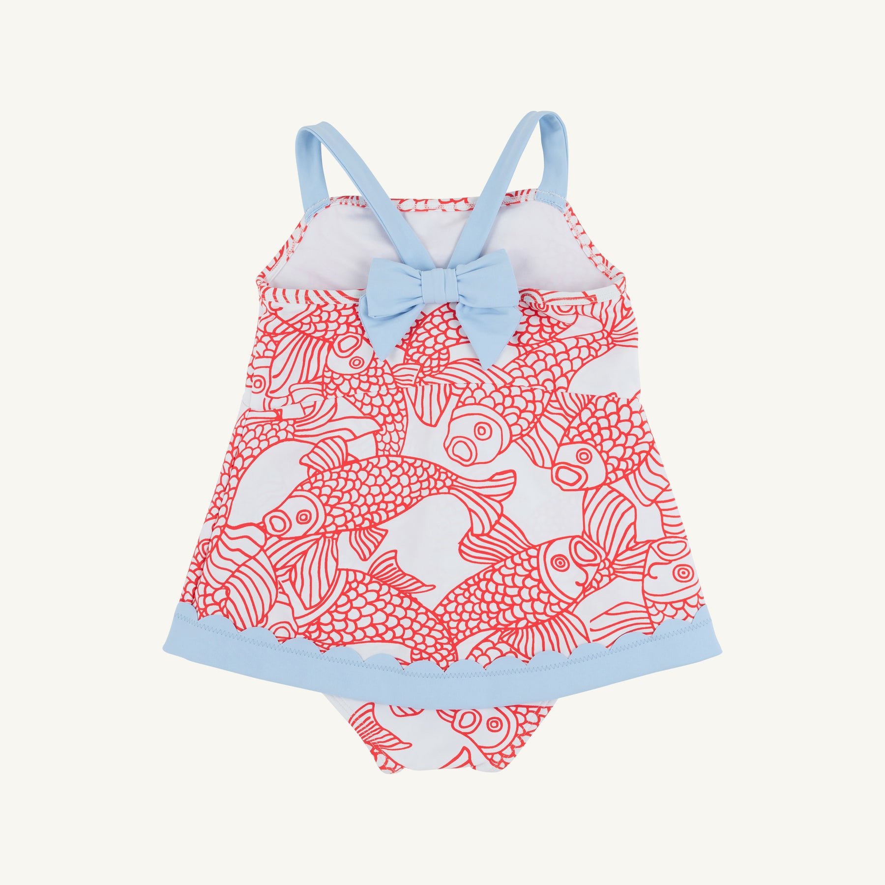 Make a splash at every pool party and beach day with our Stratford Scallop Swimsuit in Big Fish (Red) with Beale Street Blue! The secure one-piece design allows her to play worry free all day long while the adorable print and feminine scallop details make her feel like the star of the shore. This is the swimsuit that combines the durability you need with the precious style she deserves!