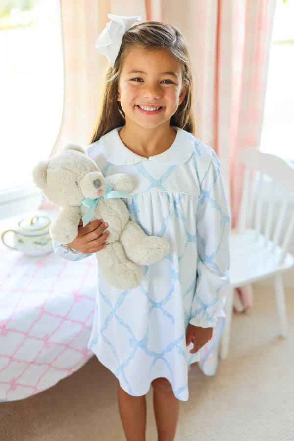 Our Long Sleeve Holly Day Dress in Belle Meade Bow (Buckhead Blue) with Worth Avenue White is simply adorable! The heavy weight pima cotton will keep her feeling comfortable while looking oh so darling for any occasion.