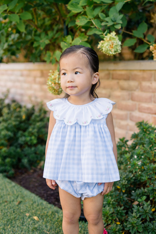 There's just something about the blue and white check Colby collection that is precious in summertime pictures and we just adore the embroidery detail.