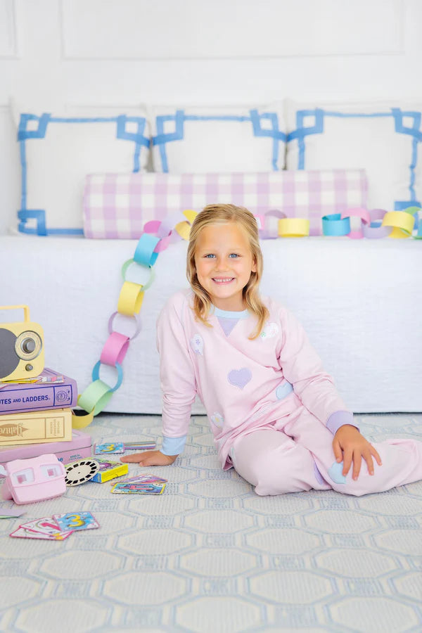 Fall in love with the Cassidy Comfy Crewneck in Palm Beach Pink! Featuring Buckhead Blue and Lauderdale Lavender hearts. this Cassidy will be her new favorite go-to piece for everything from playground adventures to family gatherings.